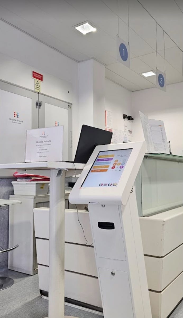 Monday night, I received a call from the hospital telling me to arrive at 15:00 the next day. Upon arrival, I chose Cirurgia on the ticket machine in the hospital lobby and took a seat. When my number was called, I learned the insurance company was still processing my authorization.5 I would need to pay the full cost, 5100€.6 I had been through this before with my elbow and know that once the insurance pays, I will immediately receive a refund. After a few standard forms, I waited for an aide to walk me to my room.